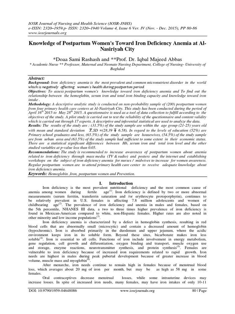 Knowledge of Postpartum Women's Toward Iron Deficiency ... from imgv2-2-f.scribdassets.com In addition to anemia, leukopenia (low however, a macrocytic anemia should warrant an investigation into gut malabsorption of vitamin b12 or folic acid. Learn about the signs of low iron, its causes and more. Causes include decreased iron intake, increased iron loss, and increased iron requirements.